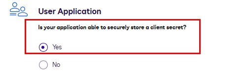 User Application: Is your application able to securely store a client secret? - Select Yes.