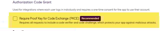 PKCE (Proof Key for Code Exchange) - Enabling this setting is optional but recommended. If enabled, it adds a layer of OAuth 2.0 security.